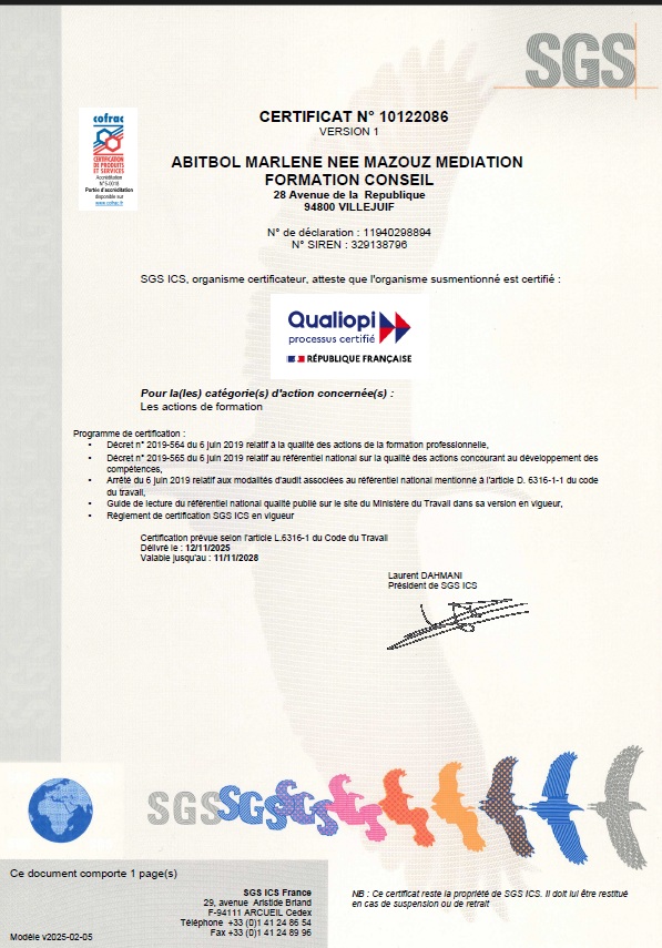 MEDIATION FORMATION CONSEIL  s'est engagée dans une démarche d'amélioration continue de ses formations.